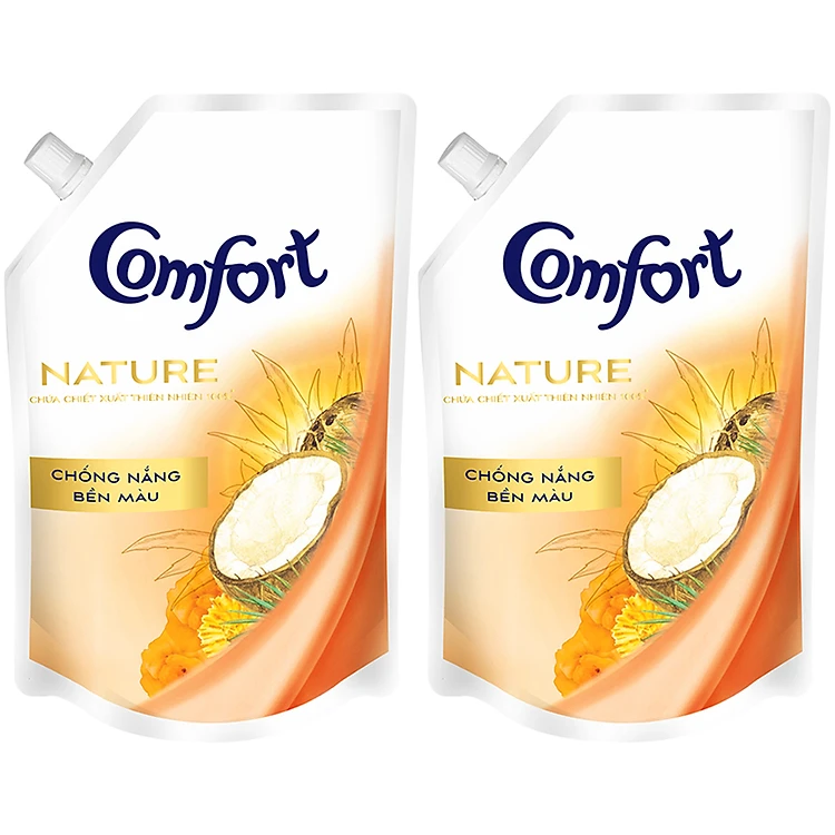 - Nước Xả Làm Mềm Vải Comfort Nature Chống Nắng Bền Màu Túi 1.5L chứa chiết xuất thiên nhiên 100% giúp quần áo bền màu dưới ánh nắng mặt trời với thành phần chống tia cực tím kết hợp.