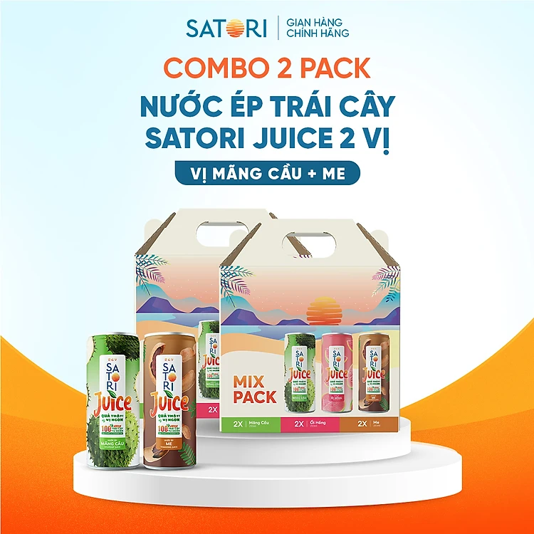 Combo 2 pack 2 vị nước ép trái cây Satori Juice Me + Mãng cầu - 250ml