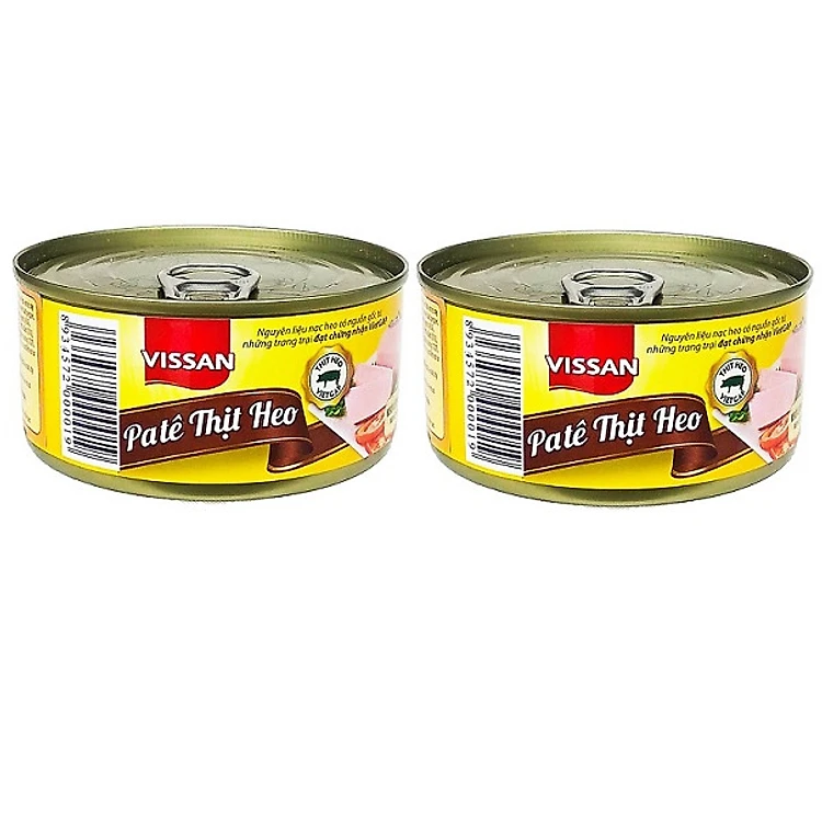 Pate thịt heo Vissan đóng hộp 170gr có hương vị thơm ngon, hấp dẫn, có thể dùng để ăn kèm với các món ăn khác như cơm, bánh mì, xôi mặ Các thành phần trong pate thịt heo Vissan bao gồm: thịt heo, nước, hành, muối, tiêu, đạm đậu nành vừa ngon vừa an toàn cho sức khỏe. Sản phẩm không chứa chất bảo quản và chất tạo màu nên rất an toàn cho sức khỏe của con người.
