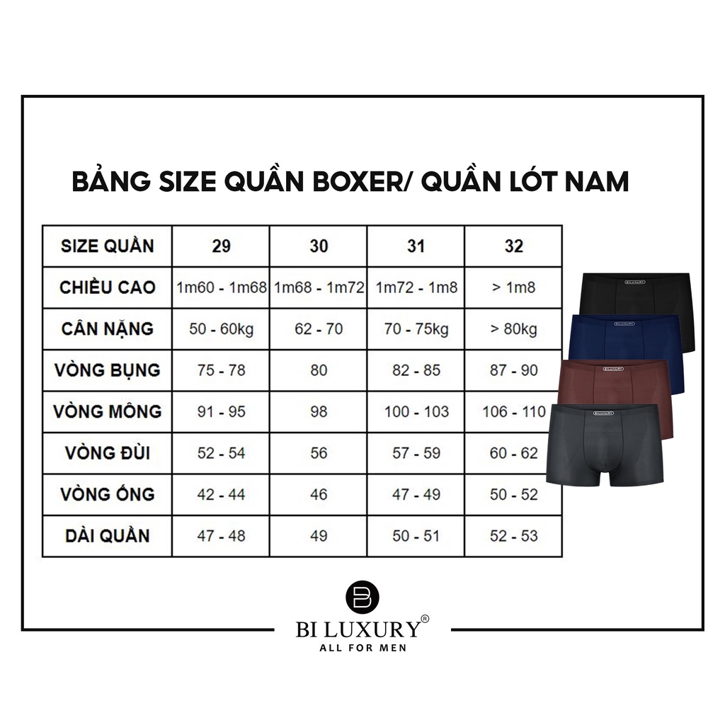 ️ HƯỚNG DẪN CHỌN SIZE QUẦN LÓT BOXER NAM