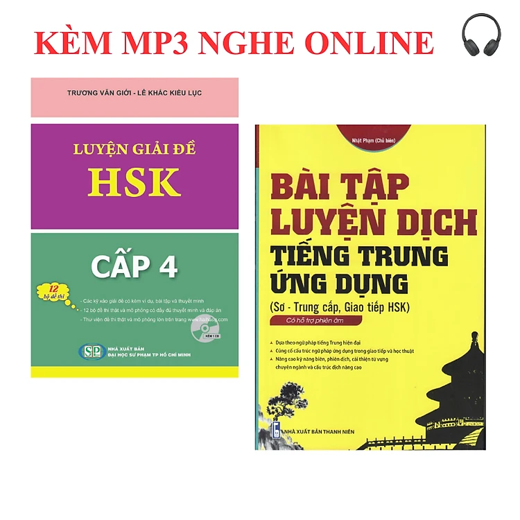 Combo 2 sách Luyện giải đề thi HSK cấp 4 có mp3 nge +Bài tập luyện dịch tiếng Trung ứng dụng (Sơ -Trung cấp, Giao tiếp HSK có mp3 nghe, có đáp án)+DVD tài liệu
