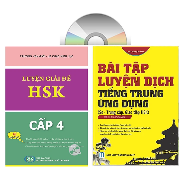 Combo 2 sách Luyện giải đề thi HSK cấp 4 có mp3 nge +Bài tập luyện dịch tiếng Trung ứng dụng (Sơ -Trung cấp, Giao tiếp HSK có mp3 nghe, có đáp án)+DVD tài liệu