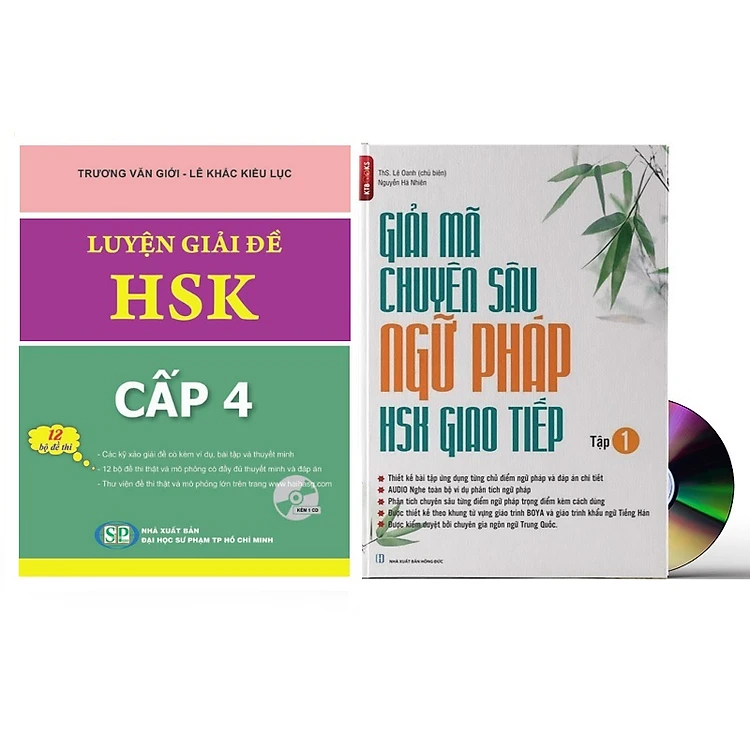 Combo 2 sách Luyện giải đề thi HSK cấp 4 có mp3 nge +Giải Mã Chuyên Sâu Ngữ Pháp HSK Giao Tiếp Tập 1 có Audio Nghe Toàn Bộ Ví Dụ Phân Tích Ngữ Pháp+DVD tài liệu