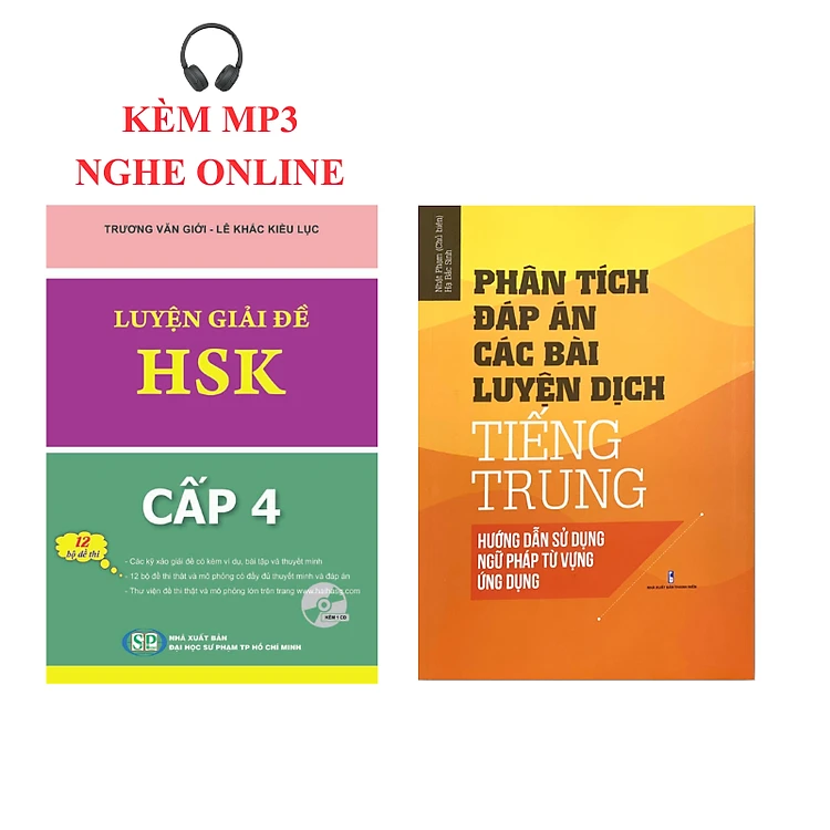 Combo 2 sách Luyện giải đề thi HSK cấp 4 có mp3 nge + Phân tích đáp án các bài luyện dịch Tiếng Trung