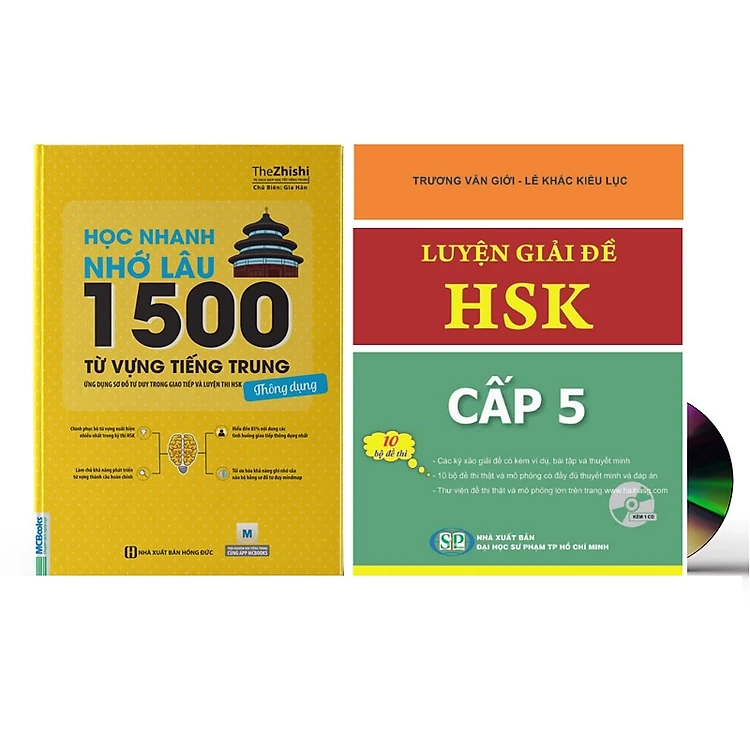Combo 2 sách Luyện giải đề thi HSK cấp 5 có mp3 nge +1500 từ vựng tiếng Trung thông dụng học theo sơ đồ tư duy+DVD tài liệu