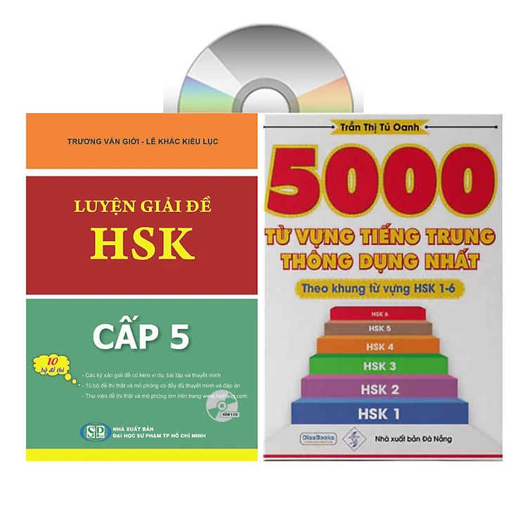 Combo 2 sách Luyện giải đề thi HSK cấp 5 có mp3 nge +5000 từ vựng tiếng Trung thông dụng nhất theo khung HSK từ HSK1 đến HSK6 +DVD tài liệu