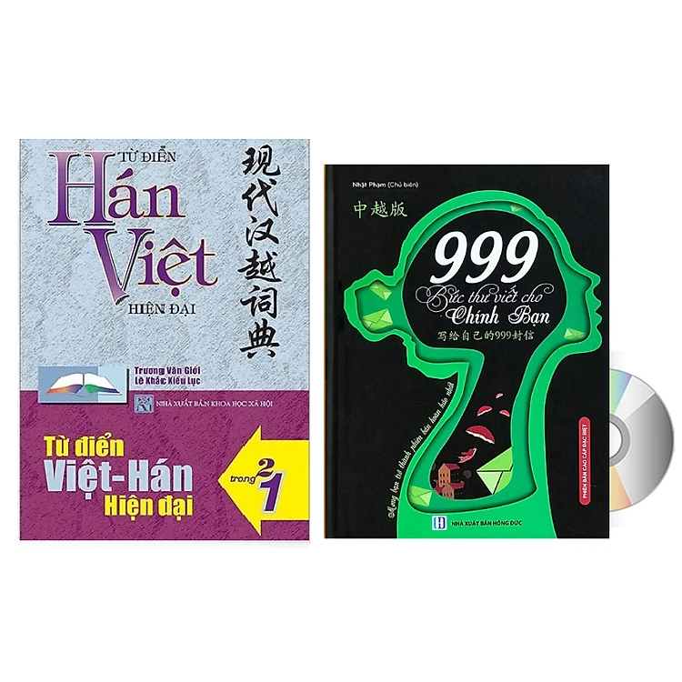 Combo 2 sách Từ điển 2 trong 1 Việt Hán Hán Việt hiện đại 1512 trang bìa cứng khổ lớn ( Hoa Việt 872 trang - Việt Hoa 640 trang)+ 999 bức thư viết cho chính mình song ngữ Trung việt có phiên âm mp3 nghe +DVD tài liệu