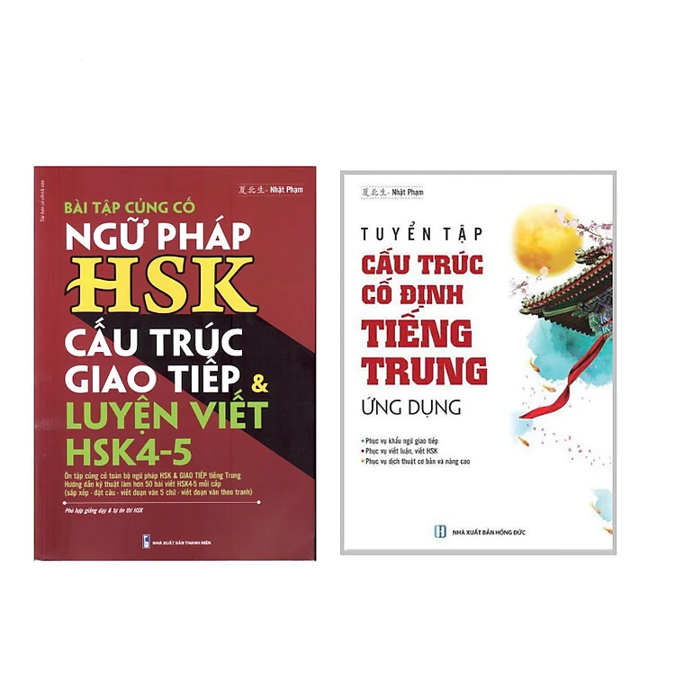Combo 2 sách: Bài tập củng cố cấu ngữ pháp HSK cấu trúc giao tiếp & luyện viết HSK4-5 và Tuyển tập cấu trúc cố định tiếng Trung ứng dụng + DVD quà tặng