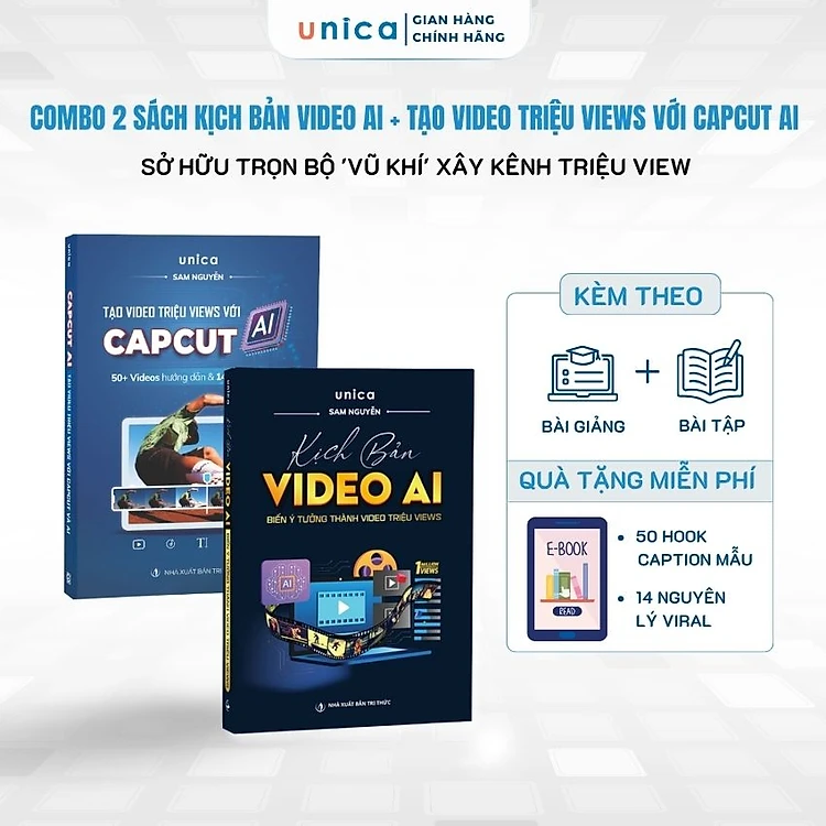 Combo 2 Sách Kịch bản Video AI & Tạo Video triệu views với Capcut AI