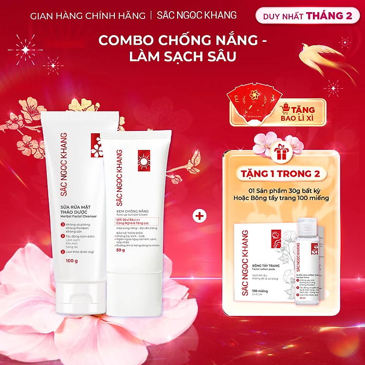 Bộ đôi giúp làm sạch và bảo vệ da Sắc Ngọc Khang: Sữa rửa mặt 100g + Kem chống nắng 50g