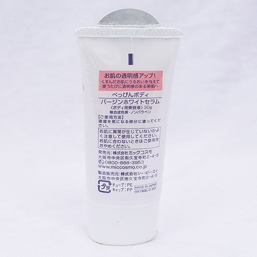 Beppin Body Virgin White Serum sử dụng 100% Placenta (tinh chất nhau thai) Nhật Bản kết hợp với tinh chất lô hội và Insoflavone trong đậu nành có tác dụng thúc đẩy quá trình tái tạo da, nhẹ nhàng thấm sâu vào chỗ thâm, sạm đen trên bề mặt da, qua đó bao bọc và bổ sung chất dưỡng ẩm dồi dào giúp da trắng sáng mịn màng.