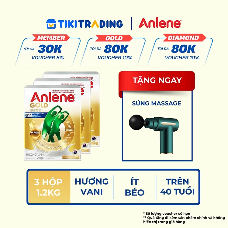 Combo 3 Sữa Bột Anlene Gold Hương Vanilla (Hộp giấy 1200g) - Tặng máy massage cầm tay hoặc máy sấy tóc