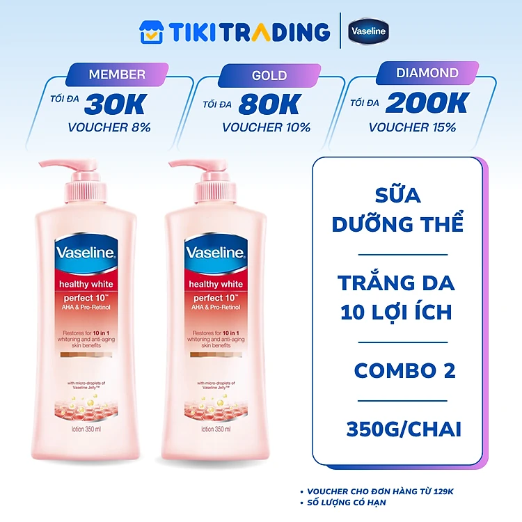 Combo 2 Sữa Dưỡng Thể Vaseline Trắng Da 10 Lợi Ích (350ml)