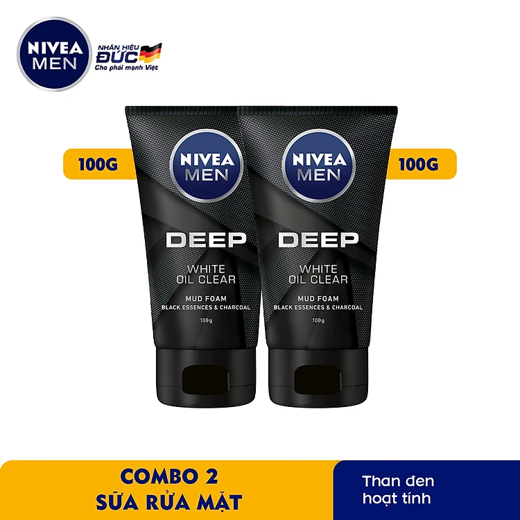 Combo 2 Sữa Rửa Mặt NIVEA MEN DEEP Than Đen Hoạt Tính Hút Nhờn Sáng Da - 84415