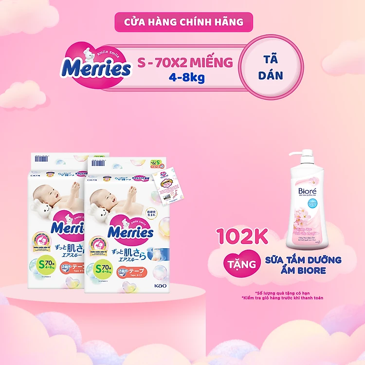 Combo 2 Tã/bỉm dán Merries Đủ Size NB76/S70/M56/L48/XL40