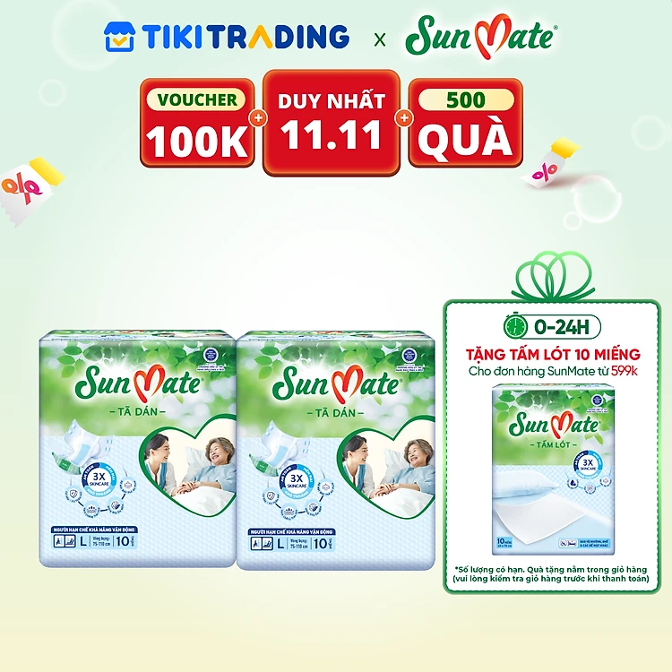 Combo 2 Tã Dán Người Lớn SunMate XA2 mới size L-10 miếng