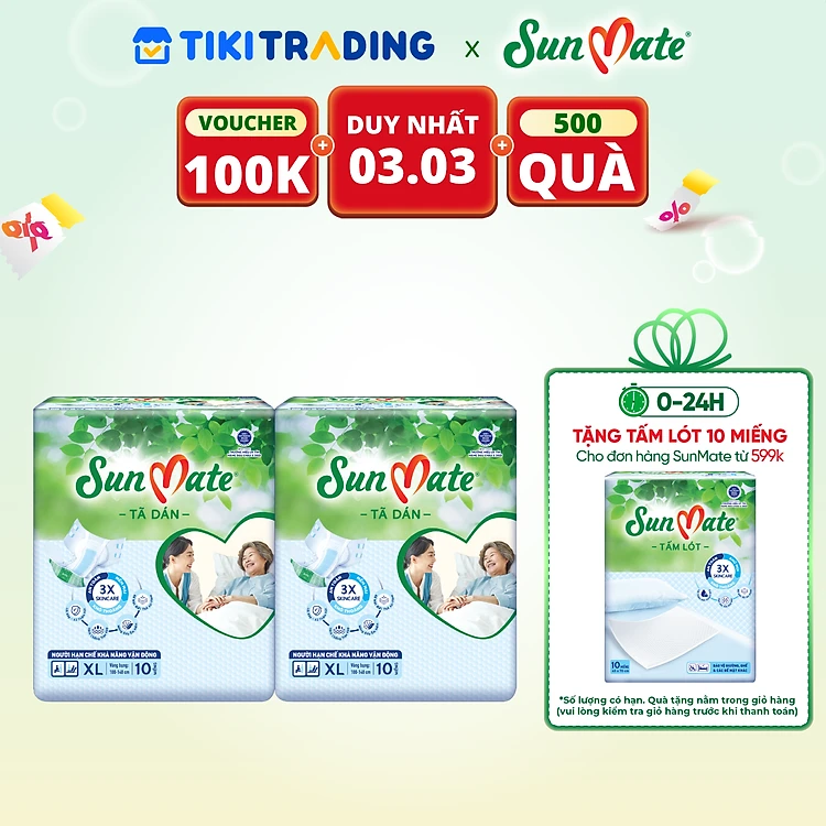 Combo 2 Tã Dán Người Lớn SunMate G2 Size XL10 (10 Miếng)