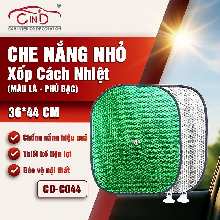 Combo 2 Tấm Che Nắng Ô Tô Xốp Cách Nhiệt Tròn Nhỏ Màu Lá Phủ Bạc CIND CD-C044 (36x44cm) - Nhập Khẩu Chính Hãng