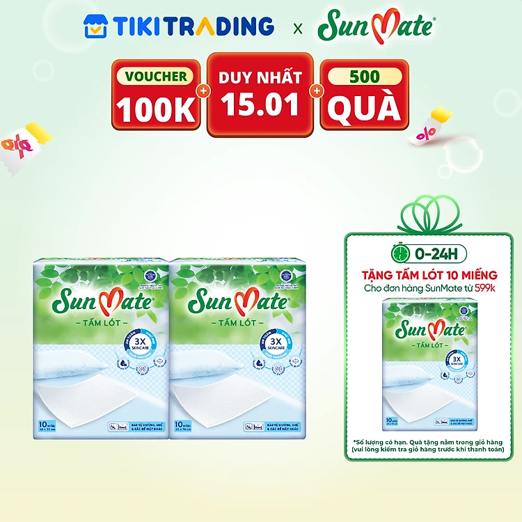 Combo 2 Tấm lót SunMate cải tiến mới 10 miếng (45 x 70cm)