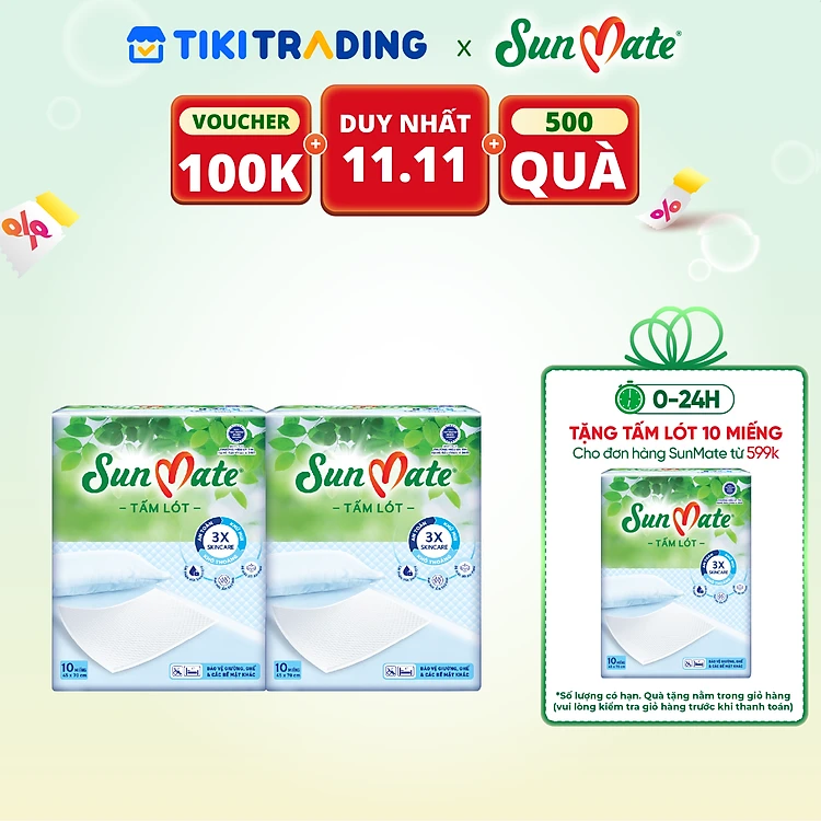 Combo 2 Tấm lót SunMate cải tiến mới 10 miếng (45 x 70cm)