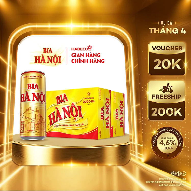 Combo 2 Thùng Bia Hà Nội - Thùng 24 lon 330ml - Phiên bản lon cao