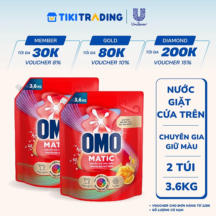 Combo 2 Túi Nước Giặt Omo Matic Comfort Cho Máy Giặt Cửa Trên - Chuyên Gia Giữ Màu 3.6kg