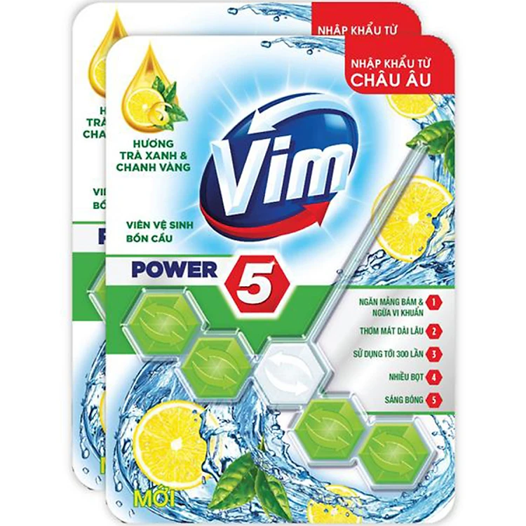 - Với Viên Tẩy Bồn Cầu Vim Power 5 Hương Trà Xanh Chanh Vàng, bạn có thể hoàn toàn tự tin rằng toilet của mình sạch khuẩn, tạo cảm giác thoải mái và dễ chịu mỗi khi sử dụng.
