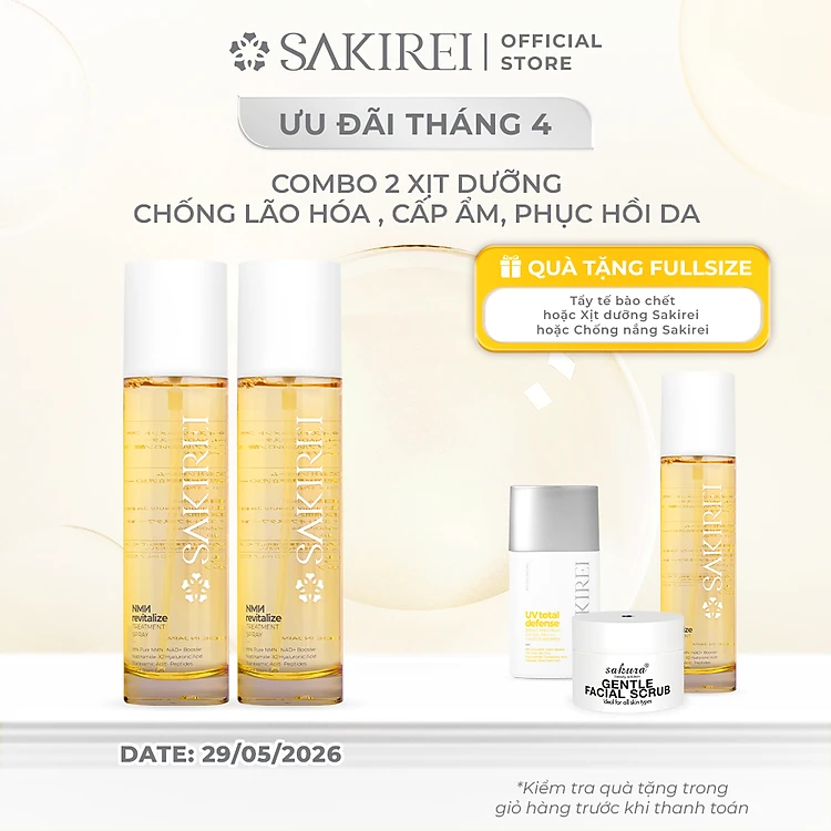 Combo 2 Xịt dưỡng NMN và HA chống lão hóa, giúp cấp ẩm và phục hồi da Sakirei NMN Revitalize Treatment Spray 150ml