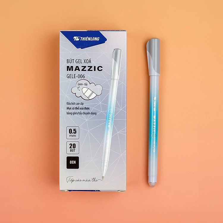 Combo 20 Bút gel xóa được Mazzic ngòi 0.5mm mực xanh/đen/tím có gôm tẩy chuyên dụng trên thân Thiên Long GELE-006