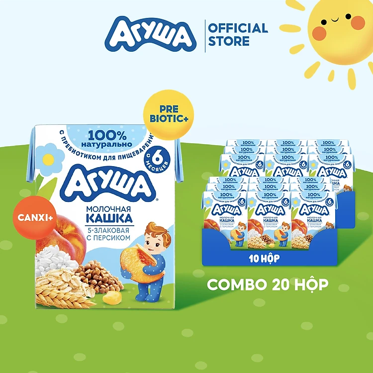 Combo 20 hộp Sữa ngày ngũ cốc vị đào Agusha 200ml/hộp
