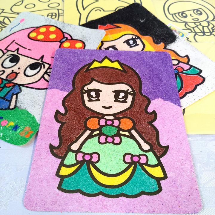 • Màu cát được làm từ những hạt cát sạch, nhuộm màu tươi tắn sẽ lần lượt xuất hiện trong tranh. Vậy là bạn sẽ có một kiệt tác của riêng mình với màu sắc sặc sỡ, trông rất thích mắt.