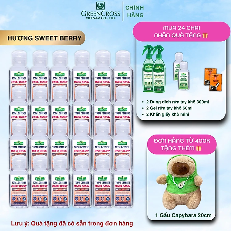 Combo 24 chai GEL rửa tay kháng khuẩn vượt trội Green Cross Total Defense chai 60ml