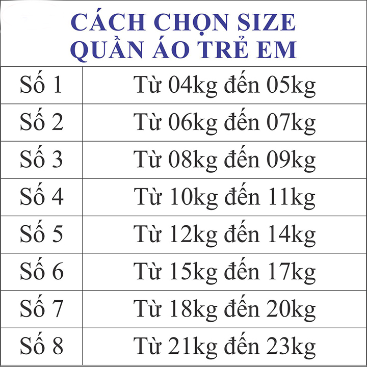 <> Size:3 - 4 - 5 - 6 - 7 - 8. Cho các bé từ 8kg đến 23kg