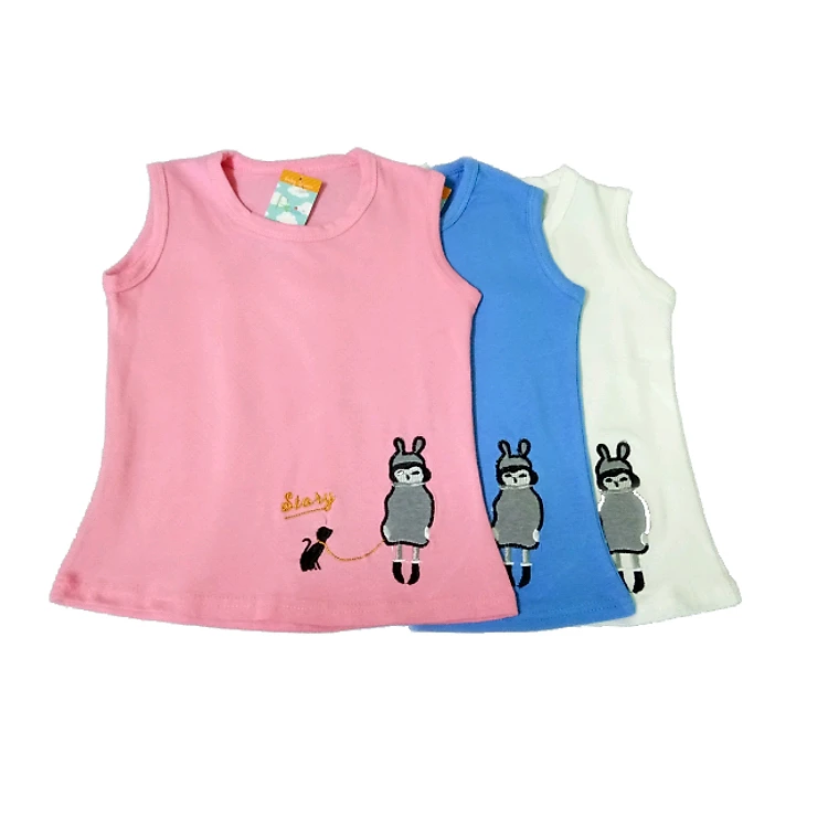 Màu trơn thêu hình ngộ nghĩnh bạn có thể phối áo cùng quần đùi hay váy để tạo nên nhiều phong cách thời trang khác nhau cho bé yêu.