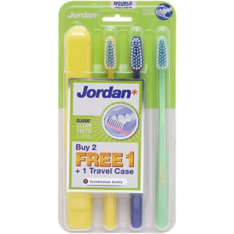 - Combo 3 Bàn Chải Đánh Răng Jordan Double Action - Tặng Hộp Đựng Bàn Chải Giao Mẫu Ngẫu Nhiên Chăm sóc răng miệng làm việc rất cần thiết và cần phải chú ý hàng ngày. Bên cạnh việc cahir răng đúng cách thì việc lựa chọn chiếc bàn chải phù hợp cũng là việc rất quan trọng. Bàn Chải Đánh Răng Jordan Target Teeth&Gums là bàn chải đánh răng có phần lông chải làm từ cước mềm, giúp bạn lấy sạch mảng bám hiệu quả mà không gây tổn thương nướu lợi và men răng.