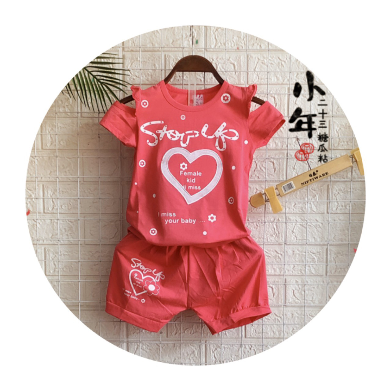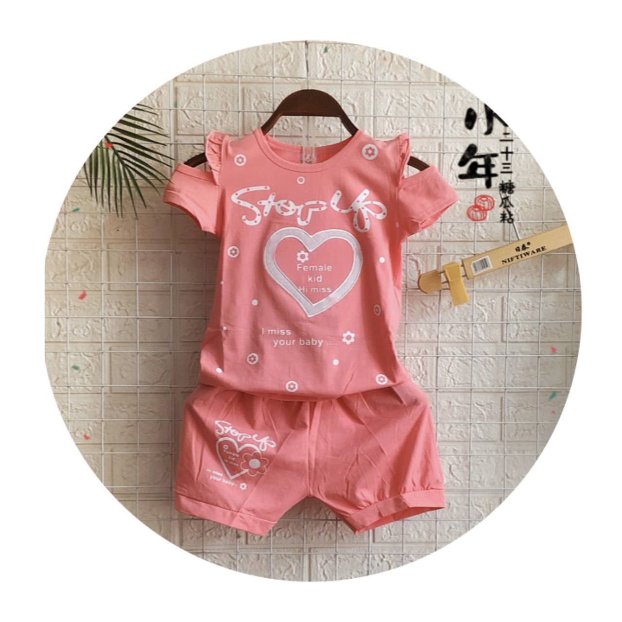 <> Sản phẩm HOT, đồ bộ bé gái in hình trái tim dễ thương