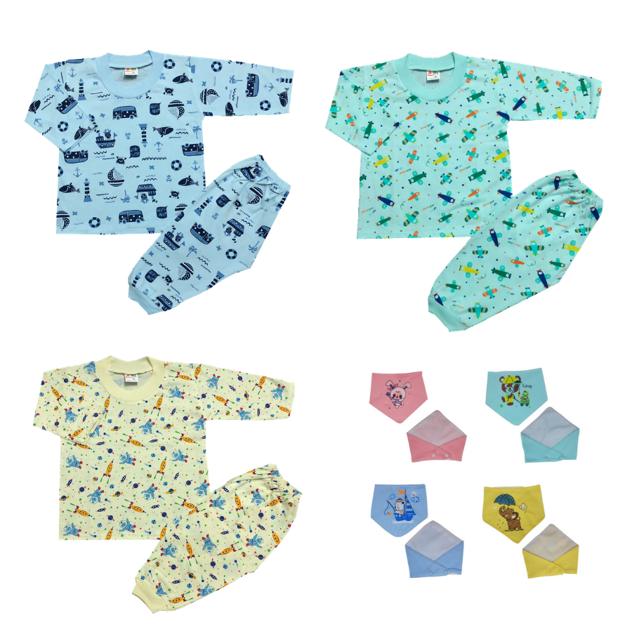 Combo 3 Bộ Quần Áo Trẻ Em Tay Dài Họa Tiết ( tặng kèm 1 yếm tam giác Thái Hà Thịnh)