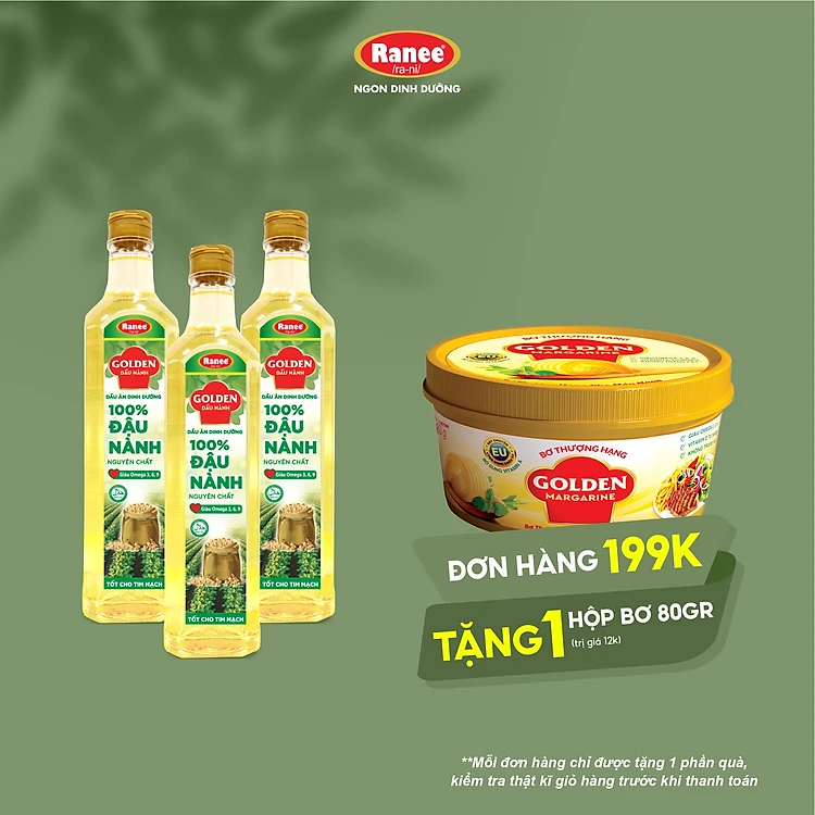 {Đơn 199k tặng hộp bơ 80g} Combo 3 chai Dầu Đậu Nành cao cấp Golden 1 lít (1 lít/chai x 3 chai)
