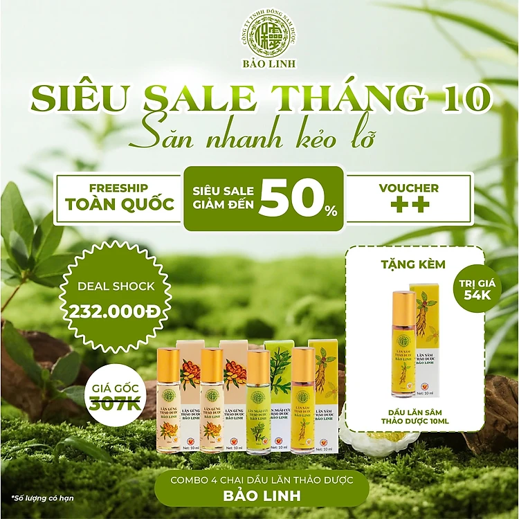 [Combo 3 chai] Dầu Lăn Ngải Cứu Thảo Dược Bảo Linh 10ml - Xoa bóp, massage giảm đau đầu, nhức mỏi, thư giãn, lưu thông khí huyết