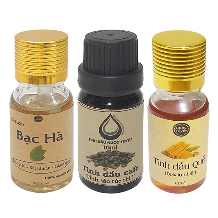 - Combo 3 Chai Tinh Dầu Bạc Hà + Tinh Dầu Quế + Tinh Dầu Cafe Ngọc Tuyết (10ml x 3) là sản phẩm giúp lấy lại sự tập trung, thiền định. Giữa một xã hội bộn bề tấp nập, việc cần một không gian riêng để thư giãn là 1 điều vô cùng cần thiết để lấy lại thăng bằng trong cuộc sống.