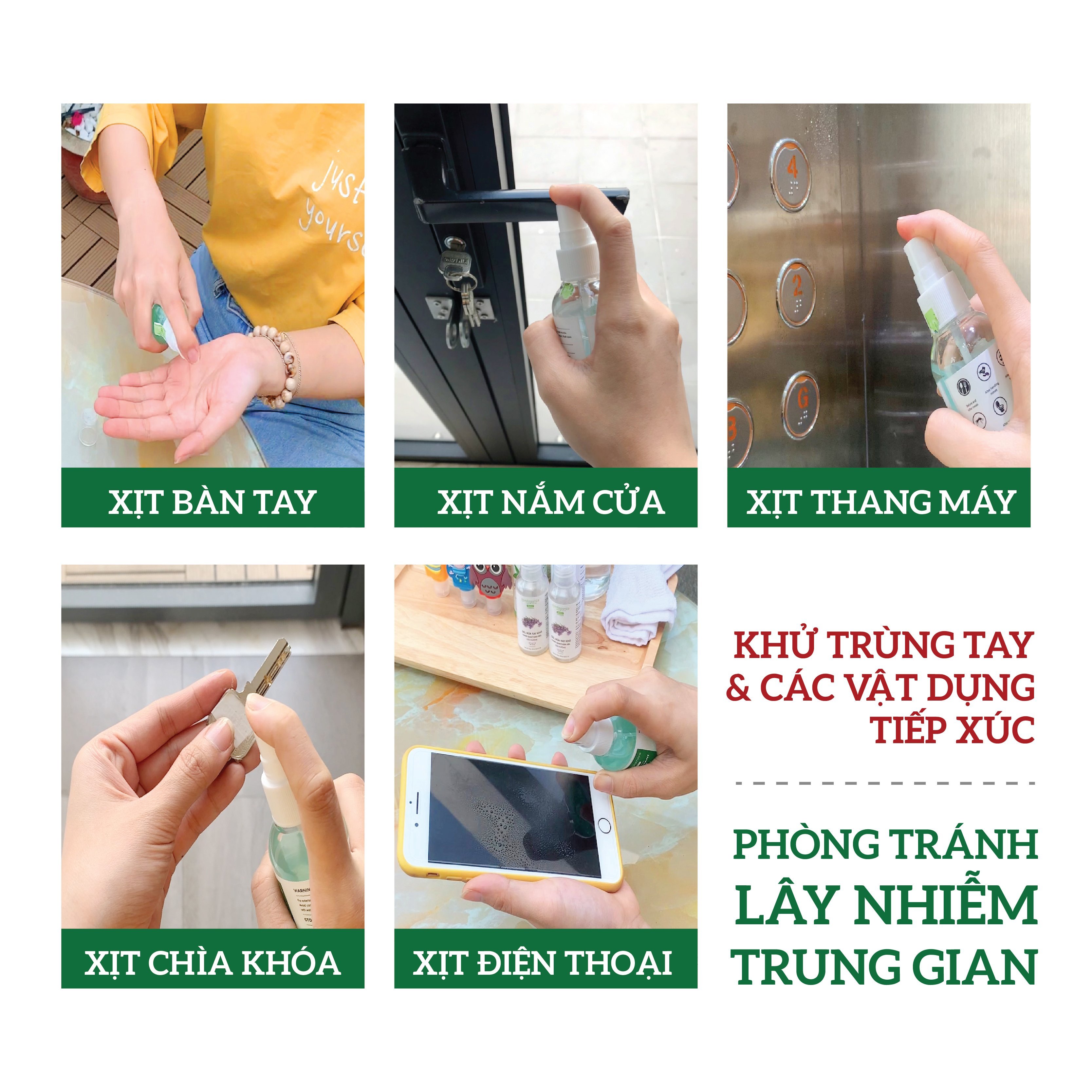 - Xịt đều một lượng vừa đủ lên tay, xoa đều. Để khô tự nhiên không cần sử dụng lại với nước.