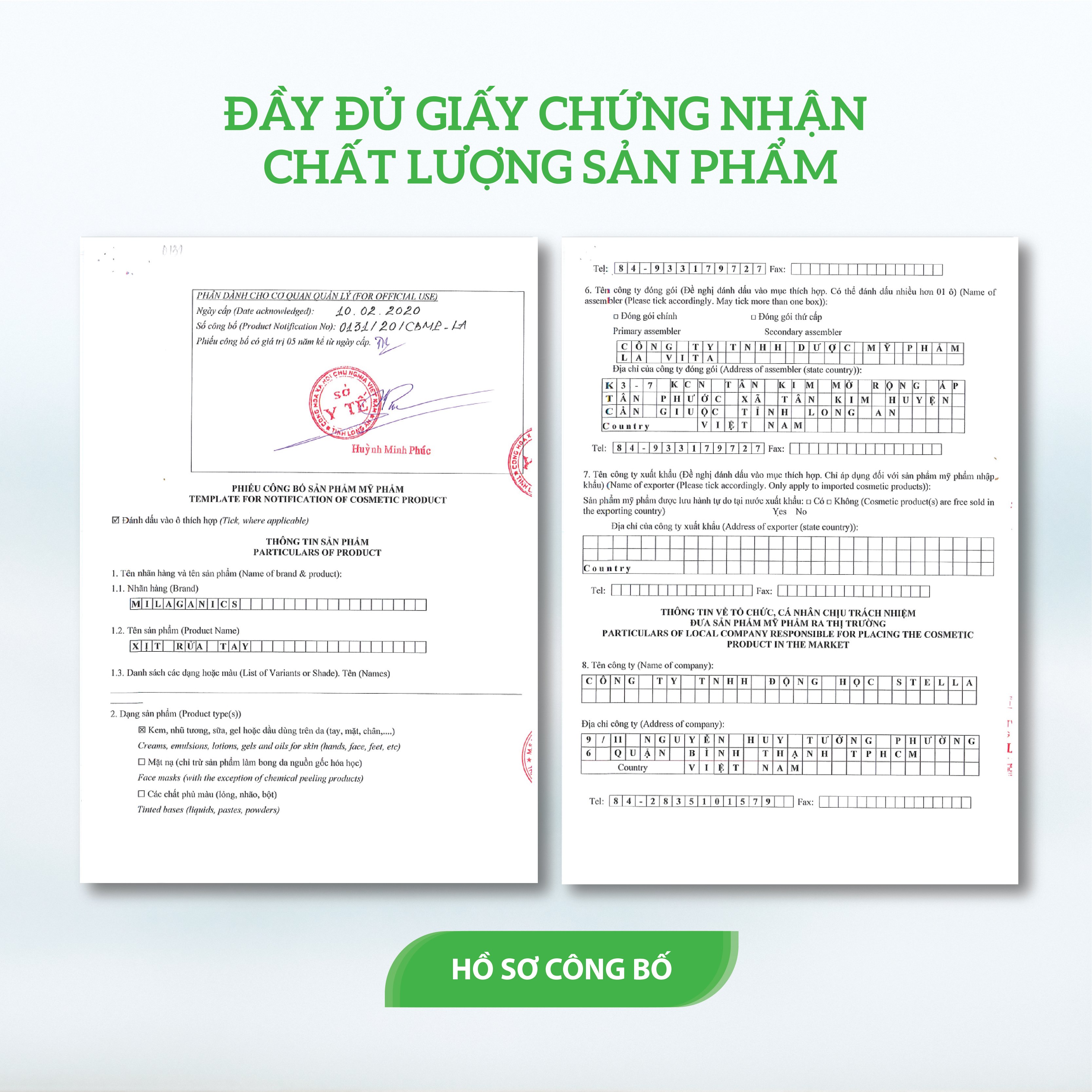 Milaganics là thương hiệu mỹ phẩm thiên nhiên của Stella Kinetics, sản phẩm của Milaganics đều được chiết xuất từ những nguồn nguyên liệu thiên nhiên sẵn có tại Việt Nam, cùng những loại nguyên liệu đặc biệt được nhập khẩu trực tiếp từ các Quốc gia nổi tiếng trên thế giới, đảm bảo an toàn và sức khỏe cho người sử dụng.