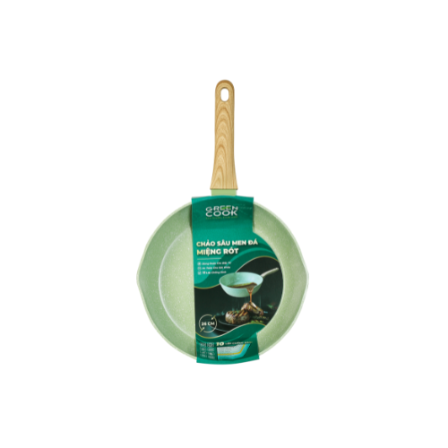 Combo 3 chảo nhôm sâu men đá ceramic miệng rót Green Cook GCP231 màu xanh 10 lớp chống dính
