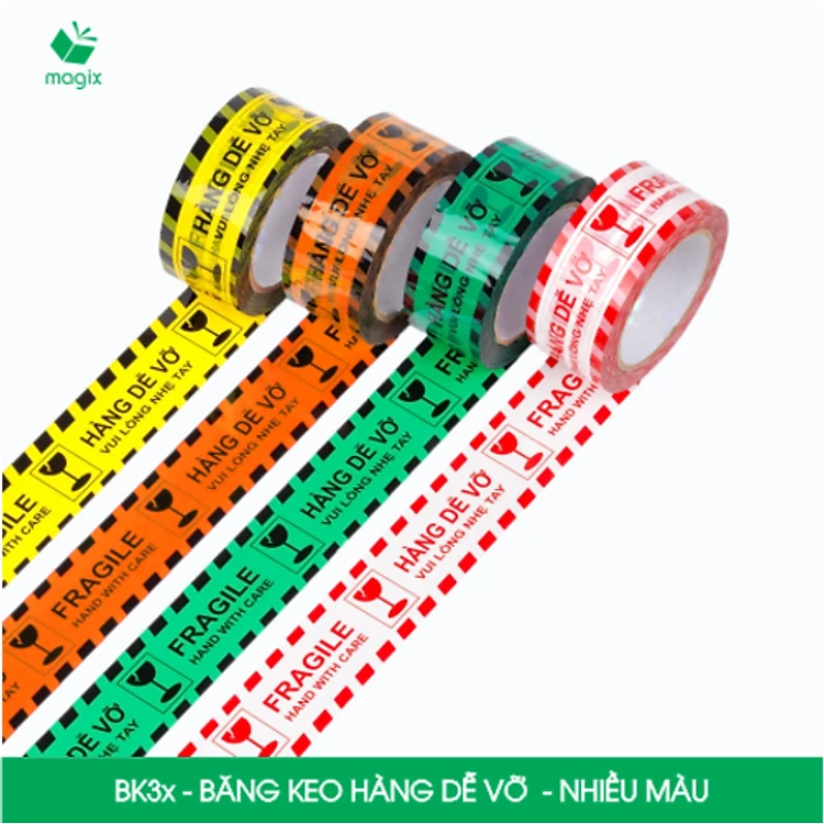Combo 3 cuộn băng keo HÀNG DỄ VỠ 4.8 cm - Băng dính niêm phong đóng hàng - Nhiều màu