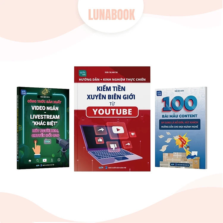 Combo 3 cuốn sách: Kiếm tiền xuyên biên giới từ Youtube, Video ngắn livestream khác biệt, 100 Bài mẫu content hút khách