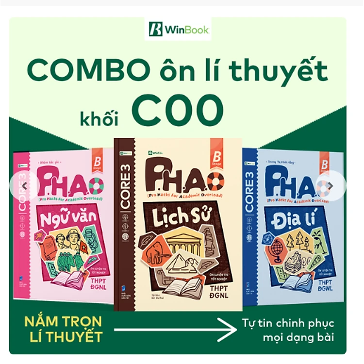 Combo 3 cuốn sách P.H.A.O Ôn luyện thi tốt nghiệp THPT ĐGNL môn Văn, Sử, Địa - Ôn lí thuyết khối C00 cấp tốc