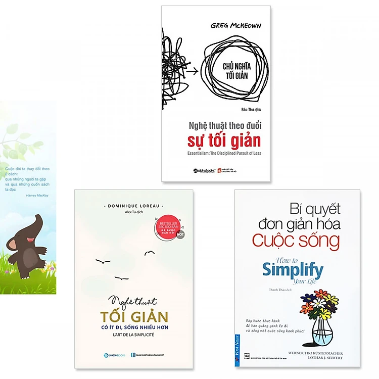 Combo 3 cuốn sách về lối sống tối giản: Bí Quyết Đơn Giản Hóa Cuộc Sống + Nghệ Thuật Tối Giản: Có Ít Đi, Sống Nhiều Hơn + Nghệ Thuật Theo Đuổi Sự Tối Giản (Kèm bookmark danh ngôn hình voi)