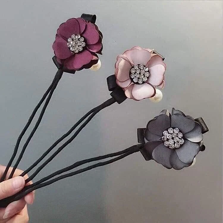 Combo 3 dây hoa trà búi tóc đính đá phong cách Hàn Quốc