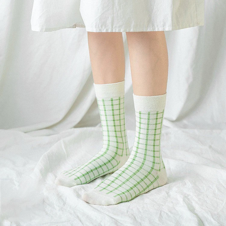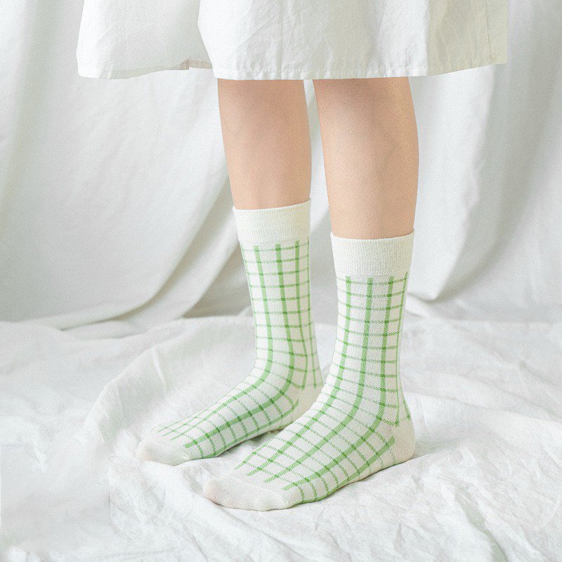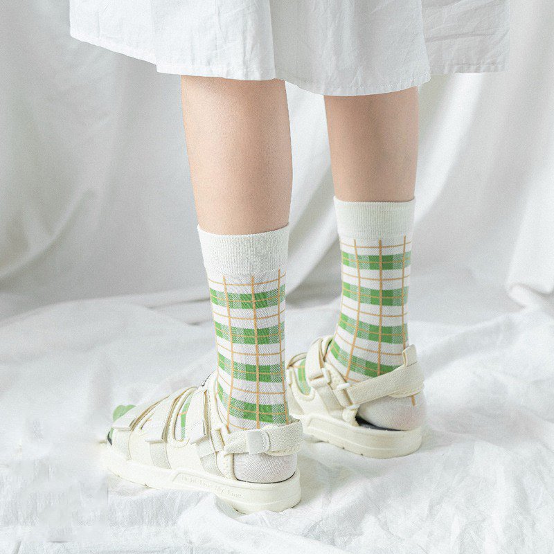 Combo 3 Đôi Tất Cao Cổ Phối Caro Đa Sắc Màu Pastel Tươi Sáng TN23