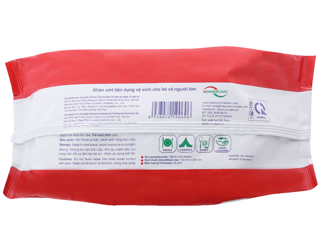 - Khăn ướt Womdercare tiện dụng vệ sinh cho bé và người lớn.